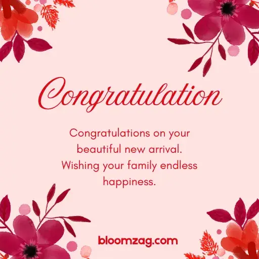 - Congratulations on your beautiful new arrival. Wishing your family endless happiness.